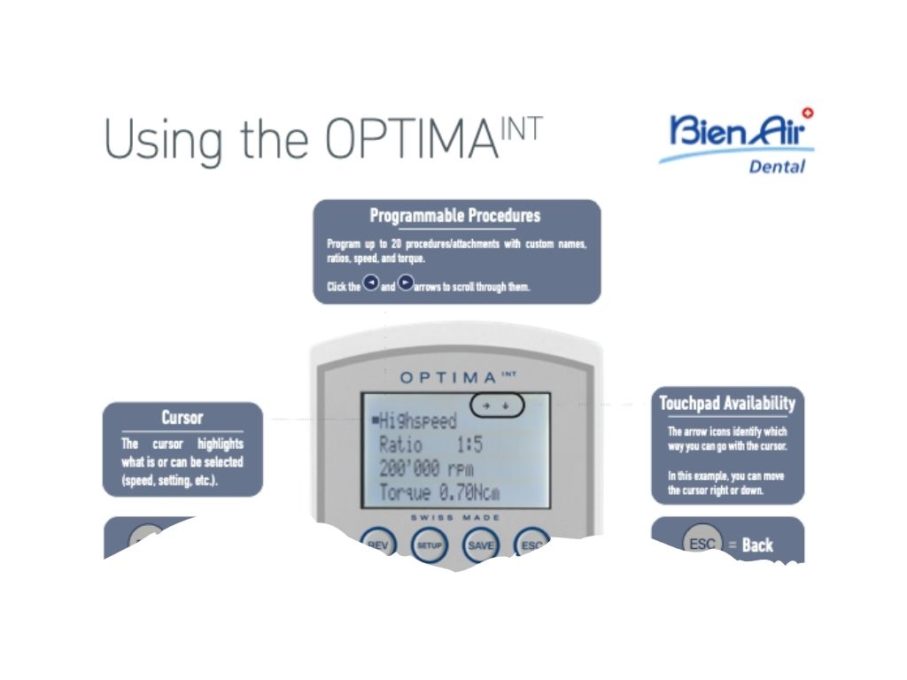 Below you’ll find a short video showcasing all of the important information for first-time use, and an interactive hotspot that you can click on to learn more about each of the buttons on the OptimaINT.